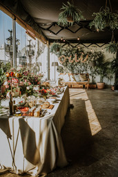 Cada año crece mi agenda de contactos de maquillaje y peluquería para novias; tenemos la suerte de contar con auténticos profesionales por toda España, pero si hay alguien de referencia en el sector es Oui Novias. Por eso, hice un hueco entre tomas (compagino el trabajo y la asistencia a eventos con la lactancia del bebé que ya me permite sacar “ratitos”). Y me fui a disfrutar de un delicioso brunch con decoración floral de Floreale; el resultado, una puesta en escena impresionante.